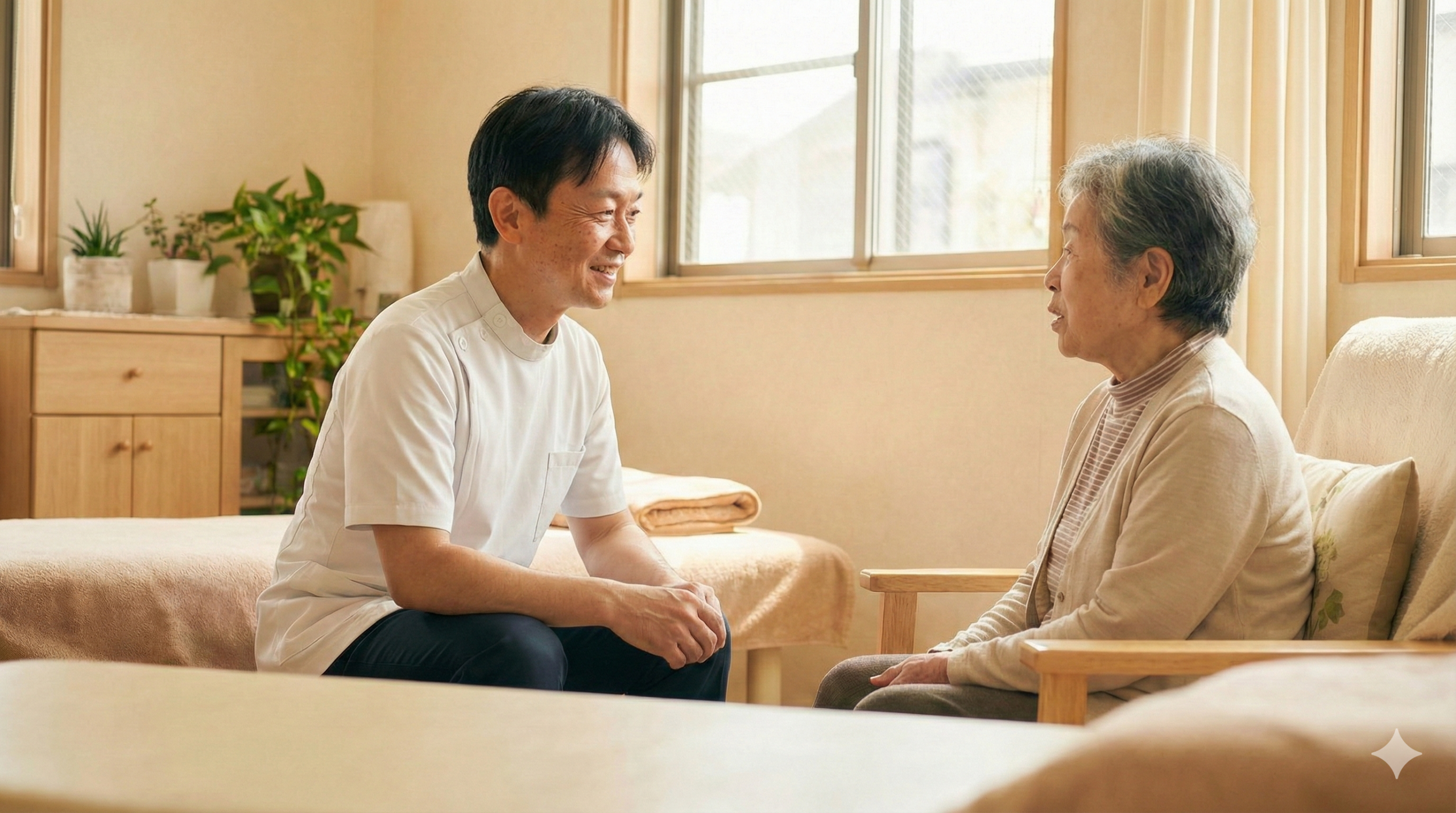 施術後、からだの状態や今後のケア方法についてご説明します。ご質問があればお気軽にどうぞ。